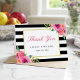 Cartão De Agradecimento Fúcsia Roxo Vermelho Floral Preto Listras Obrigado