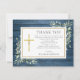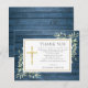 Cartão de agradecimento de funeral cristão com folhagens em um fundo de painéis de madeira azul rústico. Você pode personalizar com sua própria mensagem ou poema de agradecimento. Criado por Thisisnotme©