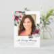 Obrigado sua família e amigos por comparecer ao funeral do seu ente querido e suas notas amáveis com este elegante cartões de agradecimentos personalizado de fotos florais. Este elegante modelo de design apresenta uma foto na frente com uma falso quadro de ouro, realçado por rosas de cor branca e vermelha pintados manualmente com verde-claro. Abaixo, em um roteiro preto, lê-se "In Loving Memory" com um nome e data para personalizar. A parte de trás do cartão tem a sua obrigado, a sua mensagem, a sua assinatura e a sua citação para personalizar, bem acentuada por um florescimento rosa vermelha. Desenhada por Susan Coffey.