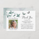 Funeral Obrigado Butterfly Foto Verde Botânica Obrigado Cartões. Envie obrigados sinceros para a bondade e compaixão mostradas durante seu difícil momento de perda. O design apresenta elementos botânicos e borboletas de cor aquosa verde-úmida macia e úmida, uma foto e uma área de mensagem editável para o seu texto personalizado. ASSISTÊNCIA: para obter ajuda sobre a modificação do design, transferir o design para outro produto ou, se você quiser coordenar itens, entre em contato com o designer ANTES DE ENCOMENDAR através da guia MENSAGEM de Bate-papo Zazzle ou envie um email para makeitaboutyoustore@gmail.com.