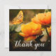 funeral personalizado, obrigado nota em uma placa plana é uma maneira simples de obrigado daqueles que mostraram conforto durante seu tempo de luto. Este cartão apresenta flores amarelas/laranja, uma borboleta bonito e um simples obrigado editável que você modelo.