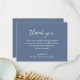 Cartão de agradecimento de memorial / funeral moderno com um design tipográfico contemporâneo com "obrigado" em tipografia de roteiro elegante, juntamente com sua mensagem personalizada em um layout simples e minimalista. O tema de cores é azul empoeirado e pode ser alterado na ferramenta de edição de design.