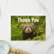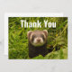 Um cartão de agradecimento plano com uma fotografia adorável apresentando um pequeno furão marrom em pé em alguma grama alta. Tão fofo quanto pode ser!
