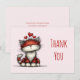 Cartão de agradecimento com um desenho caprichoso apresentando um grande gato laranja vermelho.