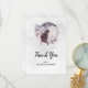 Cartão de agradecimento simples com uma pintura em aquarela de um gato preto e um buquê floral lilás. De pé diante de uma grande lua cheia. Elegante e mágico.