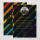 Express heartfelt gratitude with this personalized gay men wedding photo thank you card — bold diagonal Progress Pride stripes on sophisticated black with gold typography frame your wedding photo in an elegant medallion. The back features the grooms' first names in flowing gold script alongside a fully customizable message expressing your gratitude for the love and support of family and friends. Modern, masculine, and deeply personal.