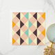 Geometric pattern with overlapping diamonds and triangles in orange, teal, cream, brown, and pink. The design is symmetrical, creating a vibrant, playful feel.
