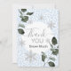 ❄️Express gratitude with a frosty flair using this Glacier Leopard thank-you card. Featuring icy blue leopard spots, silver snowflakes, and elegant eucalyptus accents, it’s a stylish way to say “Thank YOU Snow Much” during the winter season.