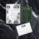 Elements: aquarela evergreens, pinheiro, abeto, pontilhando uma única montanha. Fontes de serif clássicas para texto. Cores: verde, terras altas, caçador, musgo, lacre, branco, preto. Temas: inverno, montanhas, casamento ao ar livre, país, rústico, caminhada, madeireira, ao ar livre. Coleção: Evergreen Mountain Glen White Green Black Collection Tipo de Produto: Obrigado Nota