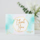 Cartão De Agradecimento Glitter Dourado Aqua Cyan Blue Watercolor