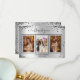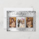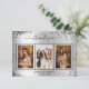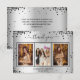 Adicione 3 das suas fotos de aniversário, tamanho vertical, uma data, nome e a nota de agradecimento. Um fundo metálico prateado falsa com texto preto e quadro, brilhos falsos pretos. O texto: Obrigado na parte frontal e seu nome no verso é escrito com um roteiro à mão com na moda com baloiços.