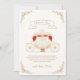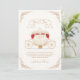 "Little princess is on the way" baby shower theme, the perfect way to celebrate the new baby on the way with a fairytale princess themed baby shower. Perfect for a girl baby shower, design features ivory gold red vintage magic pumpkin carriage theme with gold elegant vintage frame on beige background, Personalize this baby shower invitation by adding names, date, time, venue and other details.