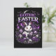A charming Gothic Easter scene blends dark fantasy and cute whimsy, featuring a wide-eyed bunny amid skulls, candles, and enchanted purple eggs.