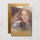 Uma fonte de assinatura manuscrita, combinada com um sans serif moderno, é usada nesta coleção de artigos de papelaria para dar um tom quente e íntimo ao seu casamento. O cartão "Obrigado" mostrado aqui apresenta sua própria imagem, caligrafia "Obrigado" e delicado sotaque cardíaco na frente enquanto o dorso tem um simples efeito de aquarela em um ouro gradiente. Adicione seu obrigado pessoal que você envia usando o modelo fornecido. Procure ID786 para ver outras peças e opções de cores para este conjunto.