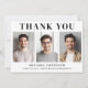 Cartões de agradecimentos de graduação moderno com 3 fotos no meio, "Obrigado" em tipografia elegante e o nome do formando, escola e ano de aula em tipografia simples. Personalize a mensagem do seu obrigado no verso e adicione seu nome em um script semelhante a assinatura.