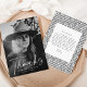 Cartões de agradecimentos de graduação simples e moderno com a foto vertical do formando com "Obrigados" em uma cobertura de script na moda. Personalize a frente do cartões de agradecimentos de graduação de fotos adicionando o nome do formando e o ano de graduação. A parte traseira do cartões de agradecimentos de fotos de graduação apresenta um plano de fundo preto e branco desenhado manualmente com espaço para sua mensagem digitada ou manuscrita.