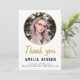 Cartões de agradecimentos de Graduação de Fotos de Formando Simples. Design elegante e simples com script de ouro e foto personalizada. Adicione sua foto e mensagem no verso.