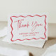 Expresse sua gratidão com este moderno cartões de agradecimentos de graduação de quadros vermelhos. Apresentando "Obrigado" em elegante escrita vermelha, este design é enquadrado por uma ousada borda ondulada vermelha contra um fundo branco para um aspecto na moda e contemporâneo. Personalize a frente com seu nome e ano de graduação para um toque único e significativo. Dentro, mostre sua foto horizontal do mais velho no topo, com sua mensagem personalizada exibida em negrito vermelho abaixo. Perfeito para formandos segundos graus e universitários, este cartões de agradecimentos personalizado adiciona um toque vibrante e sofisticado à sua apreciação.