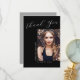 Este cartão mínimo moderno de 1 foto-graduação "Obrigado", apresenta elementos design do texto moderno fundidos com um roteiro elegante de caligrafia. Sua foto de formando é exibida na parte frontal do cartão enquanto a parte traseira do cartão oferece espaço de texto personalizado para um obrigado que você envia ou pode ser deixado como vazio se você quiser escrever sua mensagem manualmente. Os fundos são pretos na parte frontal e cinzas prateadas na parte traseira ou personalizam-nos facilmente para as cores de sua escolha.