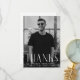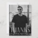Simples cartões de agradecimentos de graduação com a foto vertical do formando com "Obrigados" mostrados em caracteres brancos e modernos de deco. Personalize a frente do cartões de agradecimentos de graduação de fotos adicionando o nome do formando, o nome da escola e o ano de graduação. A placa reverte para exibir sua mensagem de obrigado personalizada em letras negras ou deixe o vazio traseiro para escrever seu próprio dispositivo!