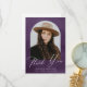 Cartões de agradecimentos de graduação elegante que inclui o dentro de fotografia do formando de um quadro de arco com fundo de aquarela roxa. "Obrigado" é exibido em um roteiro branco moderno de caligrafia com o nome do formando, a escola e o ano de formando mostrado abaixo. A parte traseira do cartões de agradecimentos de graduação de fotos fornece espaço para sua mensagem digitada ou manuscrita.