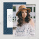 Cartões de agradecimentos de graduação de fotos moderno com a foto vertical do formando com "obrigado você" em uma cobertura de script de caligrafia de marinho manuscrita e gradiente branco opcional. Personalize a frente do cartões de agradecimentos de graduação adicionando o nome do formando e o ano de graduação. O cartões de agradecimentos de fotos reverte para incluir sua mensagem personalizada com um marinho de tendência e um padrão geométrico pontilhado branco. Remova a mensagem personalizada para escrever manualmente a sua.