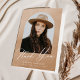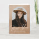 Cartões de agradecimentos de graduação elegante que inclui o dentro de fotografia do formando de um quadro de arco com fundo de aquarela bege de areia. "Obrigado" é exibido em um roteiro branco moderno de caligrafia com o nome do formando, a escola e o ano de formando mostrado abaixo. O dentro do cartões de agradecimentos de graduação de fotos fornece espaço para sua mensagem digitada ou manuscrita. A parte traseira da placa apresenta um plano de fundo de aquarela de areia.