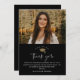 Cartões de agradecimentos de Graduação de Foto Simples, Preto e Branco, com boné elegante de folha de ouro e formando de tipografia minimalista. Clique no botão editar para personalizar este design.