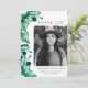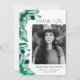 Diga "obrigado" à família e amigos com nossa na moda e moderna graduação de fotos, obrigado cartas. O design apresenta uma borda de cristais de aquarela pintados em tons de verde esmeralda. "Obrigado" é exibido em uma fonte preta moderna de serifa. Personalize as únicas cartas de agradecimento da graduação adicionando sua foto, seu nome, nome da escola e ano de graduação. A placa se reverte para exibir sua mensagem de obrigado digitado ou manuscrito com um lindo fundo verde-d'água esmeraldo.