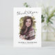 Graduação minimalista agradeço cartas com um simples fundo branco que pode ser mudado para qualquer cor, uma foto do formando, as palavras "obrigado você" em uma letra elegante que incorpora um boné de placa-mãe, o nome do formando, a escola, o ano e uma nota de agradecimento personalizada.