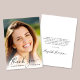 Cartões de agradecimentos de graduação elegante com a foto do formando sobrecarregada com "obrigado você" em um roteiro de na moda e seu nome, escola e ano de aula em uma simples tipografia. No verso, personalize um obrigado que você envia e adicione o nome do formando em um script semelhante a assinatura.