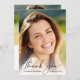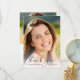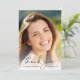 Cartões de agradecimentos de graduação elegante com a foto do formando sobrecarregada com "obrigado você" em um roteiro de na moda e seu nome, escola e ano de aula em uma simples tipografia. No verso, adicione uma foto adicional, personalize um obrigado que você envia e adicione o nome do formando em um script semelhante a assinatura.