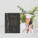 Envie a sua família e amigos um obrigado especial de graduação - você com esses cartões com fotos personalizados. À esquerda, as palavras "obrigado você" aparecem na elegante tipografia de escrita manual dourada sobre um fundo fora do preto sobre uma breve e editável mensagem de obrigados para os convidados de festa de formatura em letra de impressão, com seu nome abaixo. Uma aquarela preta agata borda aparada com brilho de ouro falso decora a borda esquerda. Adicione uma foto vertical à frente e uma segunda foto horizontal à parte traseira da placa.