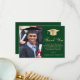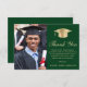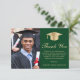Elegante cartões de agradecimentos de graduação verde apresentando um boné de formando dourado, uma foto do formando, "Obrigado" em um roteiro clássico de ouro, e seu obrigado você envia mensagens e o nome do formando na tipografia moderna de ouro serif.