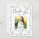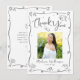 Certifique-se de que o formando favorito mostre apreço a todos que apoiaram seu evento marcante! Envie este cartão de agradecimento de foto personalizado, alegre, simples, moderno e divertido. Na frente, uma tipografia de escrita manual cinza suave e divertida e rabiscos de esboço de ícone de formatura desenhados à mão, junto com sua foto personalizada, sobre um fundo branco minimalista. Adicione a foto de sua escolha e personalize o texto personalizado com o nome do formando e o ano da turma. No verso, digite sua mensagem personalizada ou exclua o texto para escrever sua própria nota manuscrita. Convites, etiquetas de endereço, faixas, adesivos, leques e outros itens de formatura também estão disponíveis nesta coleção moderna e elegante. Garantido para adicionar um toque elegante à sua correspondência!