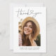 Um simples e moderno obrigado de graduação que você faz para enviar para aqueles que o felicitaram, frequentaram sua festa de formatura, lhe deram presentes etc. Ele diz "obrigado você" no topo de uma fonte moderna com um coração bonito no meio. Você pode adicionar uma segunda imagem no verso e a mensagem é editável.