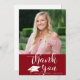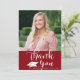 Obrigado vermelho e branco de graduação personalizado — você é cartão com fotos personalizado com o nome do formando e o ano de aula na frente, juntamente com um título OBRIGADO em tipografia de script de caligrafia. O lado inverso oferece a opção de pré-impressão da mensagem do obrigado-você ou opta por excluir o texto de amostra para deixar o vazio de área para notas de apreciação manuscritas. ASSISTÊNCIA: para obter ajuda com a modificação ou personalização do design, alteração de cor, transferência do design para outro produto ou, se você quiser coordenar itens, entre em contato com o designer ANTES DE ENCOMENDAR através da guia MENSAGEM de bate-papo Zazzle ou envie um email para makeitaboutyoustore@gmail.com.