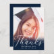 Cartão De Agradecimento Graduation Modern White Script Photo Blue