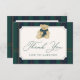 Thank your guests with this elegant baby shower thank you card showcasing a hand-painted watercolor teddy bear dressed in a navy and green plaid scarf. Below the illustration, “Thank You” is written in graceful green calligraphy, with space to add your name. The text is framed by a vintage-style cream design and paired with a watercolor plaid background in navy, green, and red for a traditional, old money aesthetic. The back provides room for a personalized note to complete your message of gratitude.