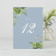 Cartão De Agradecimento Greenery Floral Dusty Número da Mesa Azul