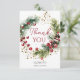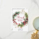 Guirlanda de pinheiro nevado em aquarela para casamento de chuveiro de noiva de inverno com bagas vermelhas, pinhas e purpurina dourada, cartões de agradecimento para casamento de chuveiro de noiva temático de Natal de inverno