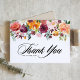 Envie agradecimentos a familiares e amigos com este cartão de agradecimento personalizável. Ele apresenta ilustrações em aquarela de flores em tons de borgonha, roxo, laranja e rosa com acento de verde. Este cartão de agradecimento floral é perfeito para casamentos de outono, chás de bebê, chás de noiva e outros eventos. Personalize adicionando nomes e mensagens.