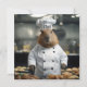 "Habilidade com Massas: O Capivara Culinário", uma encantadora capivara usa um casaco de chef branco crocante e chapéu combinando enquanto assume o centro do palco em uma cozinha de pastelaria. com sua bancada de trabalho adornada com pastelarias coloridas, Uma imagem de criatividade e charme culinário se desenrola, mostrando os talentos inesperados de uma capivara no mundo da panificação fina!