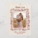 Celebrate your special day and express heartfelt gratitude with this wedding thank you card featuring a whimsical, hand-drawn scribble style frame and personalized photo of the happy couple. Perfect for couples who want to share a romantic moment from their big day while thanking guests for their presence, love, and generous gifts. The front design highlights your favorite wedding photo surrounded by playful red doodle-style flourishes and elegant handwritten typography, while the back continues the artistic theme with a fun sketch of a champagne tower and your personal message. The cream background and red ink create a timeless look with a modern twist, making this card suitable for rustic, boho, minimalist, or classic wedding themes. Ideal for couples who love personal, creative stationery with a dash of fun and flair. Professionally printed on quality cardstock, this card is a keepsake your guests will cherish. Custom names and dates add that perfect finishing touch to your post-wedding gratitude.