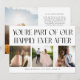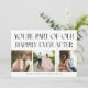 Modern and playful wedding thank you photo card featuring a text that says "You're part of our happily ever after" with 3 of your pictures. You can add another photo on the back with a message. White.
