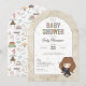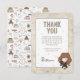 Celebrate your little one on the way with this magical baby shower thank you card featuring a sweet chibi-style illustration inspired by Hermione Granger from the Harry Potter series. The design showcases the clever witch wearing her Gryffindor robe and holding a wand, surrounded by pastel starburst accents. A parchment-style texture frames the invitation details, while the back is decorated with whimsical wizarding icons like books, cauldrons, and magical creatures. Customize with your names and message to create an enchanting thank you card perfect for any Harry Potter-loving family.