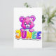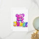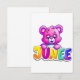 Um urso rosa vibrante e adorável com olhos grandes, segurando um letreiro colorido "JUNEEE". Perfeito para temas infantis, cartões de aniversário ou designs divertidos!