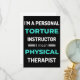 I'm A Personal Torture Instructor I Mean Physical Therapist design. This is a short funny quote which is great as an appreciation gift idea for Physical Therapists. Also suitable as Physical Therapist Gifts.