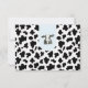 Impressão de primeiro aniversario de vaca negra Foto do Cartões de agradecimentos de vaca sagrado de vaca doce cartões de agradecimentos de primeiro aniversário com um arco azul claro, padrão impressão de vaca negra, vaca branca e negra fofa e uma foto. Este cartões de agradecimentos de primeiro aniversario de vaca sagrada e fofo é uma maneira ideal de obrigado para os convidados por terem vindo à primeira festa de aniversário do seu filho.