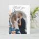 Elevem a vossa gratidão com este Cartões de agradecimentos de Foto Floral de Casamento Indígo Rust, espantoso e atraente, Indigo Rust. Esta expressão de apreço sofisticada combina elementos elegantes de design, incluindo uma moderna reviravolta botânica. A paleta rica de crosta indigo empresta uma vibração rústica que é perfeita para casamentos inspirados em boho. A luxuosa motif floral aquarela complementa lindamente sua querida foto, criando um toque personalizado que deixa uma impressão duradoura. O requintado detalhamento na design adiciona ao apelo geral, fazer adequado para uma variedade de temas de casamento, do clássico ao contemporâneo. Perfeito para um casamento de verão, casamento outono, casamento rústico, casamento no inverno, casamento da primavera, casamento azul marinho, casamento boêmico, ou qualquer casamento moderno. Use a ferramenta design para personalizar o tamanho do texto, as cores, os estilos de fonte e o posicionamento do elemento ao seu gosto. Para obter itens correspondentes, visite a coleção de convites Indigo Rust Watercolor Floral Boho Wedding.